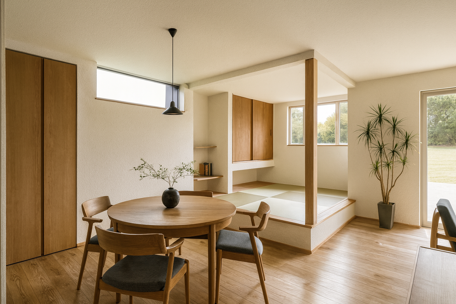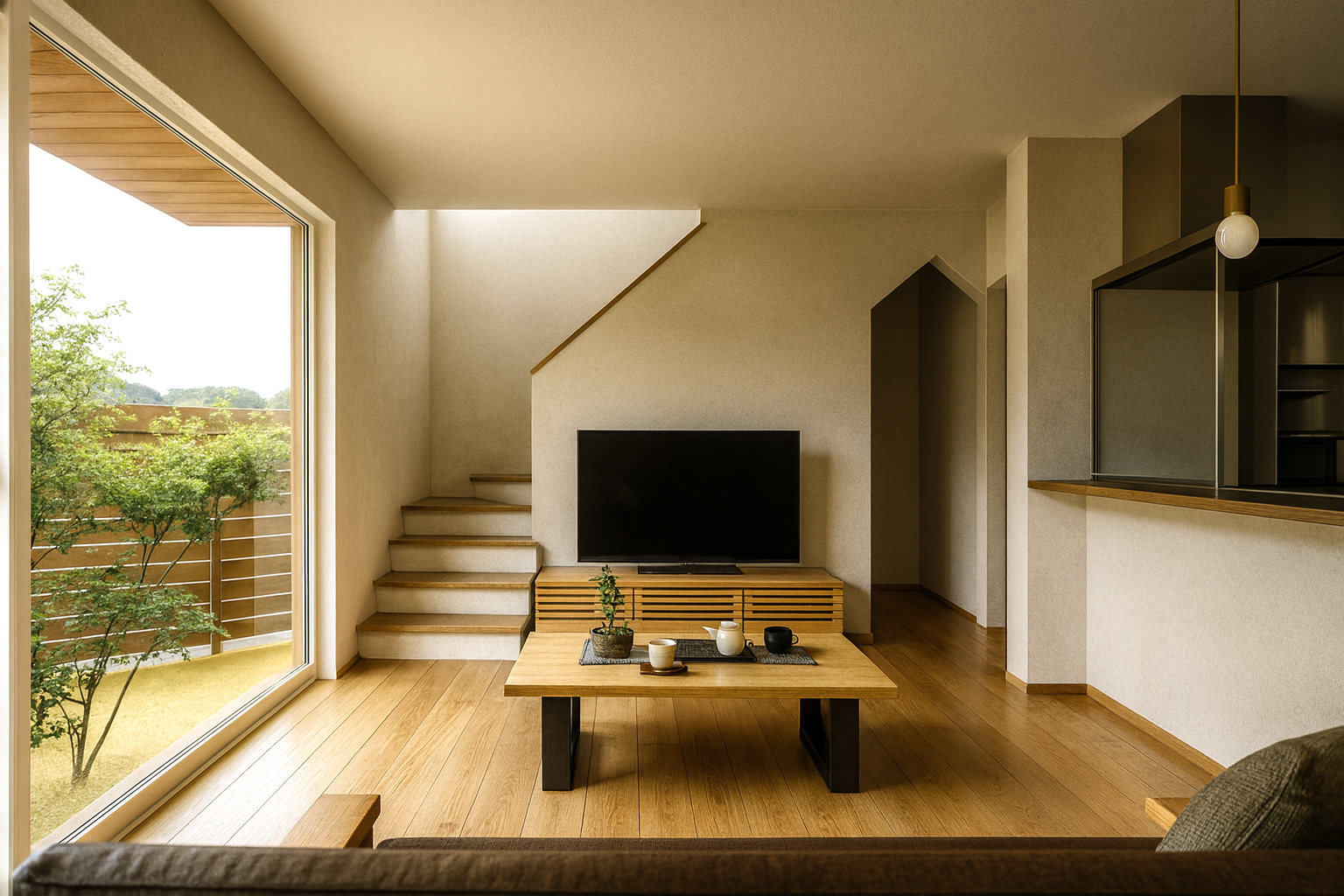 生活を1階で完結させる「ほぼ平屋」の潔さと、小上がりの畳でゴロリとする至福。