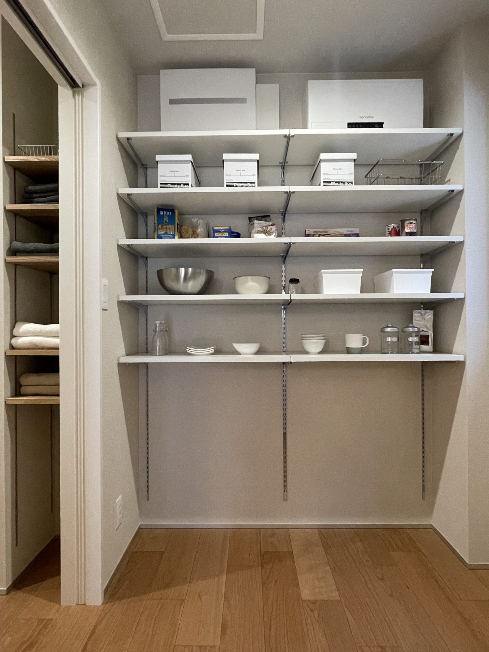 たっぷりと収納量を取ることができるパントリー。ストック品が収納できるスペースがあることで気持ちに余白が生まれる。