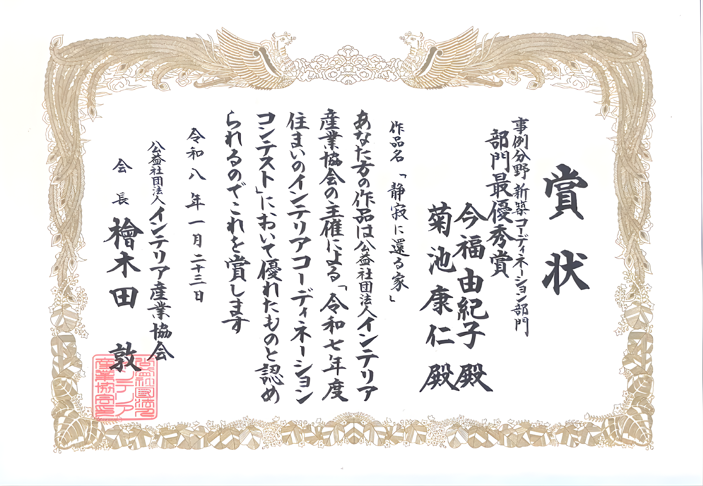 この度、e-デザイン空間の青葉山リトリートハウスが、インテリア産業協会主催の住まいのインテリアコーディネーションコンテストにて、新築コーディネーション部門の「部門最優秀賞」をいただくことができました。