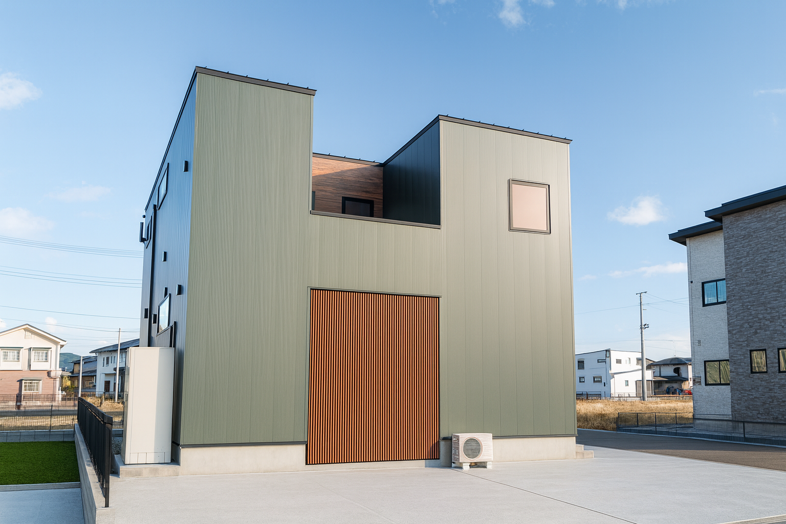 縦格子による目隠しの中にはリビング続きのウッドデッキがあり、BBQや読書など自宅にいながらアウトドア感を愉しめます✨