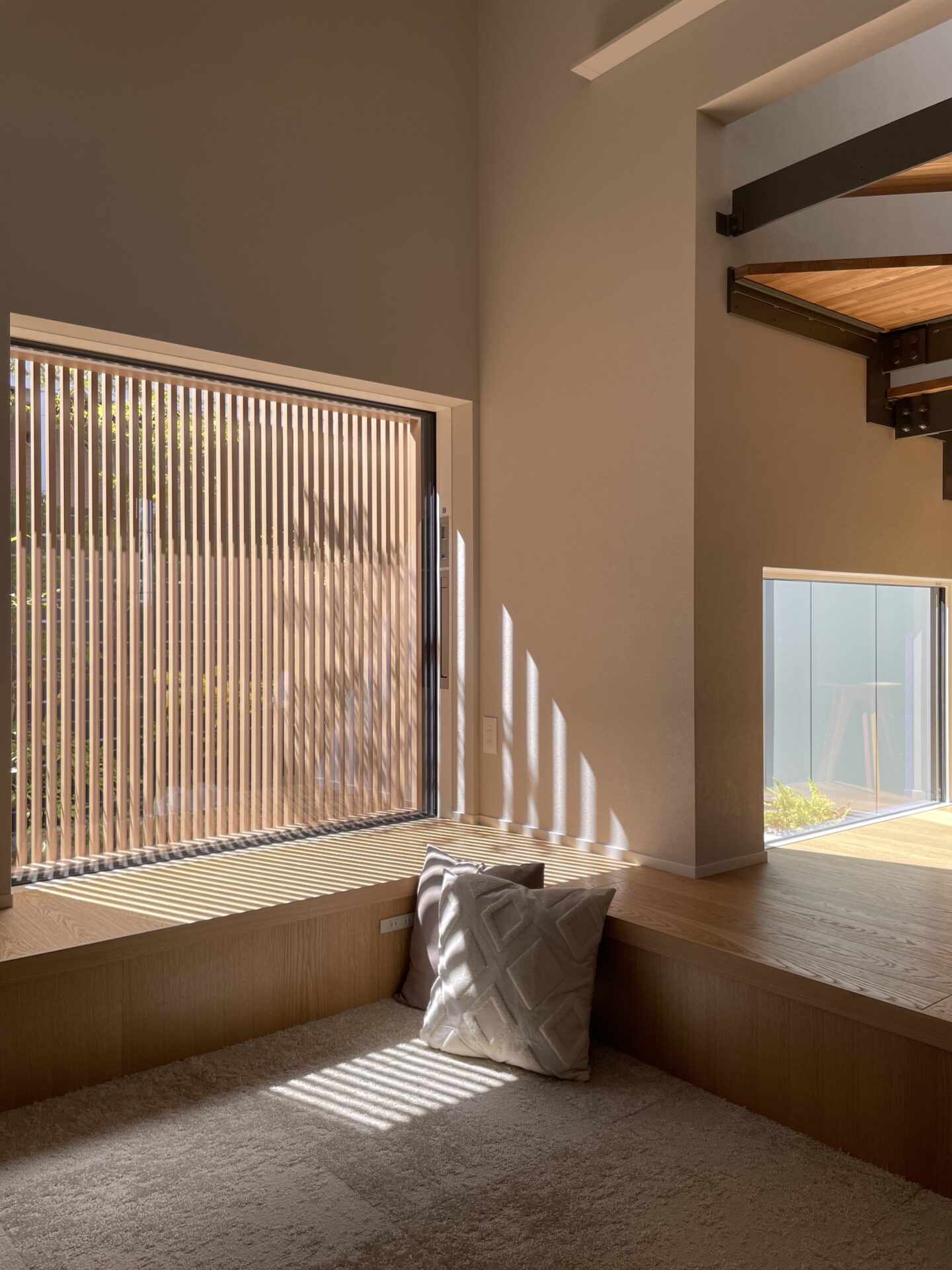 借景を取り込みつつ、光を絞ることで陽の入りも美しく