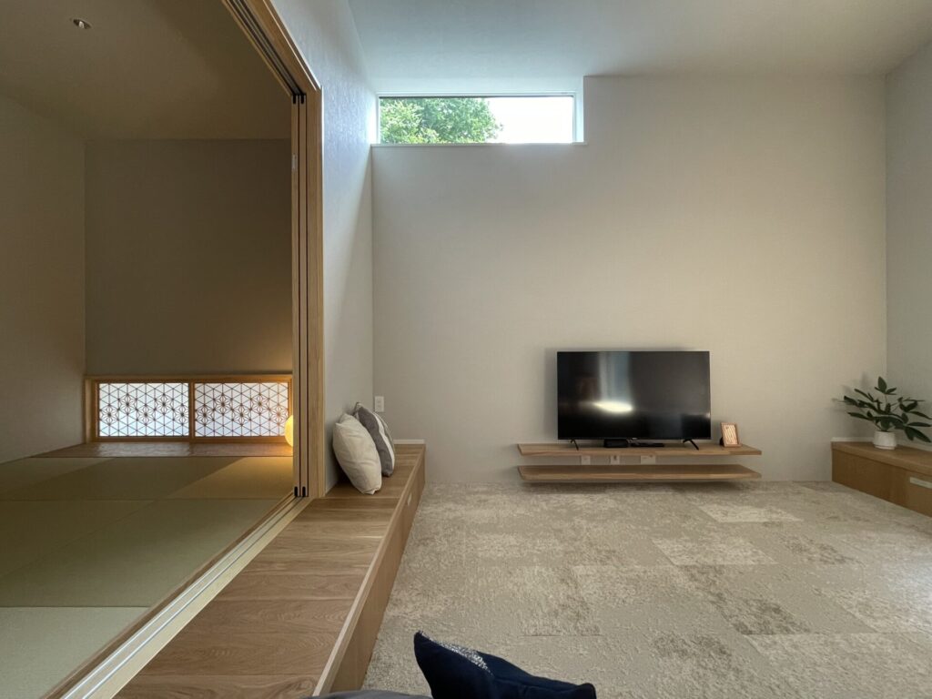 リビングの隣に設けた和室は来客時のスペースやお子様の遊ぶスペースなど、多目的に使用可能。